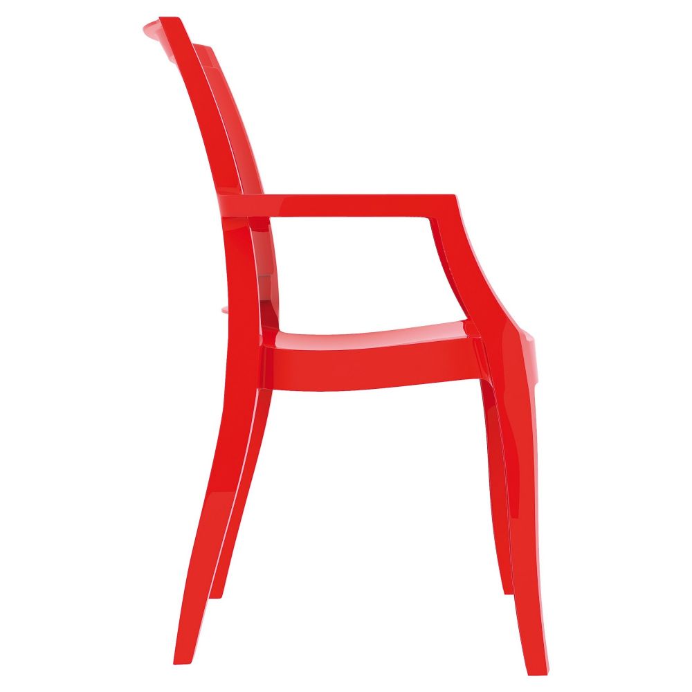 Arthur indoor outdoor arm chair. Made with unbreakable polycarbonate. Commercial grade polycarbonate. Fire rating as self-extinguish classification V2. Strong legs and structure. Stackable.
