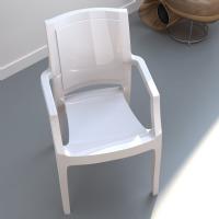 Arthur indoor outdoor arm chair. Made with unbreakable polycarbonate. Commercial grade polycarbonate. Fire rating as self-extinguish classification V2. Strong legs and structure. Stackable.
