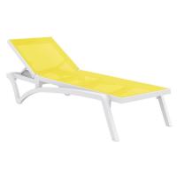 Pacific resort quality sling chaise lounge with dark gray frame and black sling. Simple sleek design with commercial strength. Sling is made with Serge Ferrari mesh fabric. Chaise is very comfortable and no need for cushions. Back adjustable to 5 positions and folds flat for more comfortable sun bathing. Recessed wheels for mobility. Stacks for easy storage. Frame made of marine grade resin. Extremely durable and comfortable. Commercial grade.