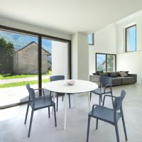 Lisa resin indoor - outdoor dining arm chair. New transitional design combined with commercial strength. Can be used in modern or traditional settings indoor or outdoor. Made from marine grade resin with gas injection molded legs. Smooth seat and back for easy cleaning. Perfect for heavy use areas. Preferred by restaurants, cafes, food-courts, hospitals and hotels. Chairs are stackable. Certified for strict European standards by CATAS Italian research institute and test laboratory.