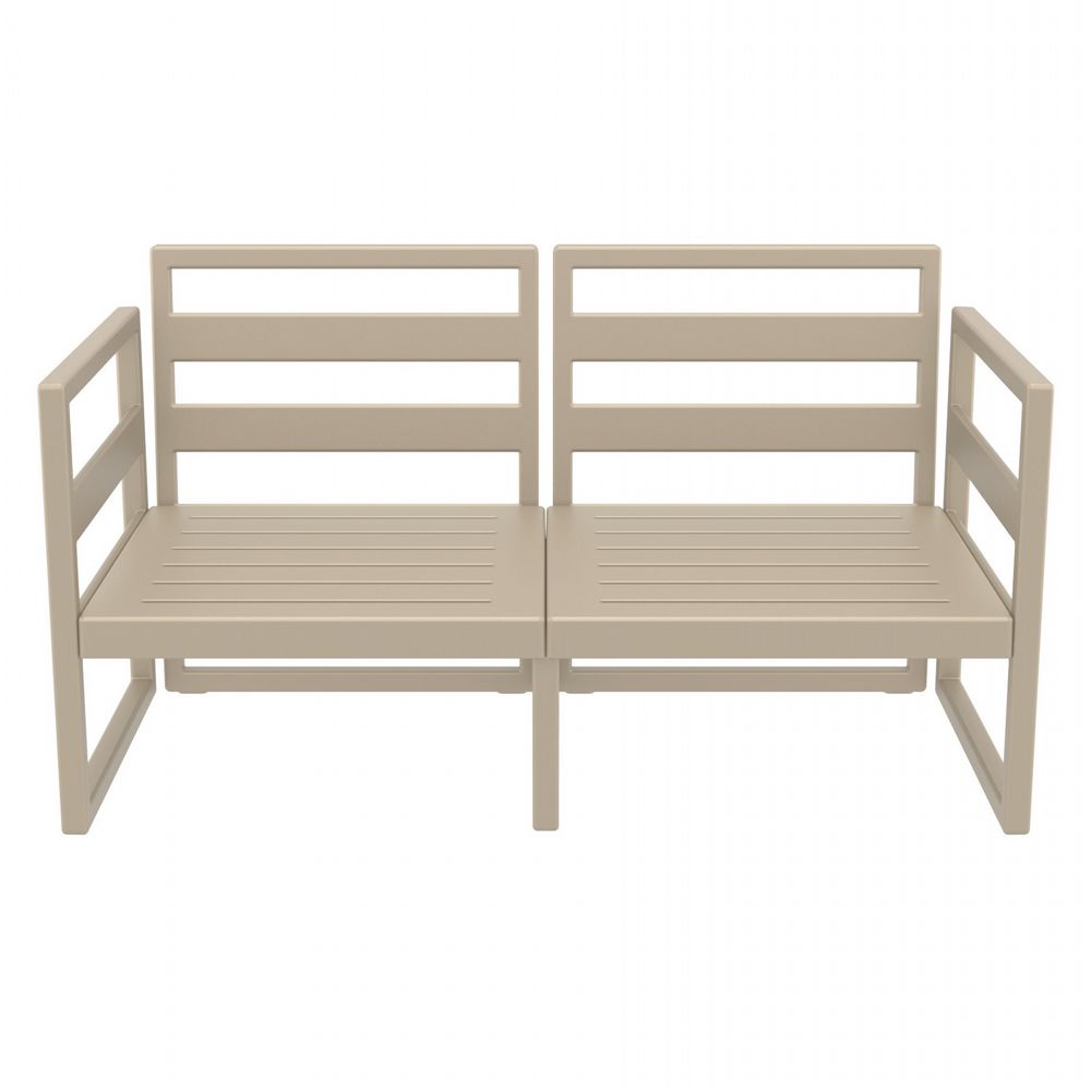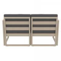 Mykonos resin outdoor loveseat with 100% acrylic charcoal cushions. Modular contemporary design with commercial strength. Made from commercial grade polypropylene resin. Loveseats are perfect for heavy use areas. Casual and modern design make it suitable for indoors and outdoors. Polypropylene frame resists sun, oils, chlorine and all outdoor conditions. Certified for strict European standards by CATAS Italian research institute and test laboratory.