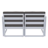 Mykonos resin outdoor silver gray loveseat with 100% acrylic charcoal cushions. Modular contemporary design with commercial strength. Made from commercial grade polypropylene resin. Mykonos loveseats are perfect for heavy use areas. Casual and modern design make it suitable for indoors and outdoors. Polypropylene frame resists sun, oils, chlorine and all outdoor conditions. Certified for strict European standards by CATAS Italian research institute and test laboratory.