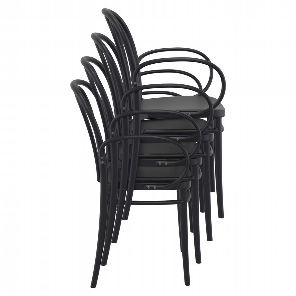 Victor XL resin indoor outdoor arm chair is made from marine grade polypropylene. Great for outdoor spaces, patios and decks. Used by restaurants, cafes and hotels.