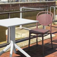 Marsala Sky Pro stacking outdoor dining chair. Contemporary design. Made from commercial grade resin with gas injection molded legs. Extremely durable for outdoor temperatures. Easy cleaning. Perfect for heavy use indoor or outdoor areas.