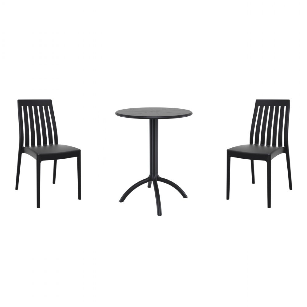 Transform your small outdoor area into a stylish space with Soho chairs and Octopus 24" round table 3 piece bistro set in black. Made from durable polypropylene resin, this bistro set is perfect for balconies, terraces, decks, patios, cafes and restaurants. Soho chairs feature a sleek and contemporary design that adds a touch of sophistication to any space. Octopus 24" round table provides plenty of room for two people to sit and enjoy a meal or drink together.