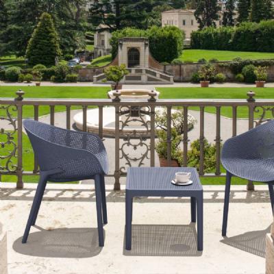 Sky arm chairs and Sky 24" side table 3 piece conversation set in dark gray is stylish and comfortable set for your small outdoor space! Made from durable and weather-resistant polypropylene resin, this set is perfect for balconies, terraces, decks, rooftops and patios. Sky arm chairs feature a comfortable seat and backrest, making them the perfect choice for relaxing with a good book or enjoying a drink with a loved one. Two people can easily enjoy a refreshing drink together at Sky 24" side table.