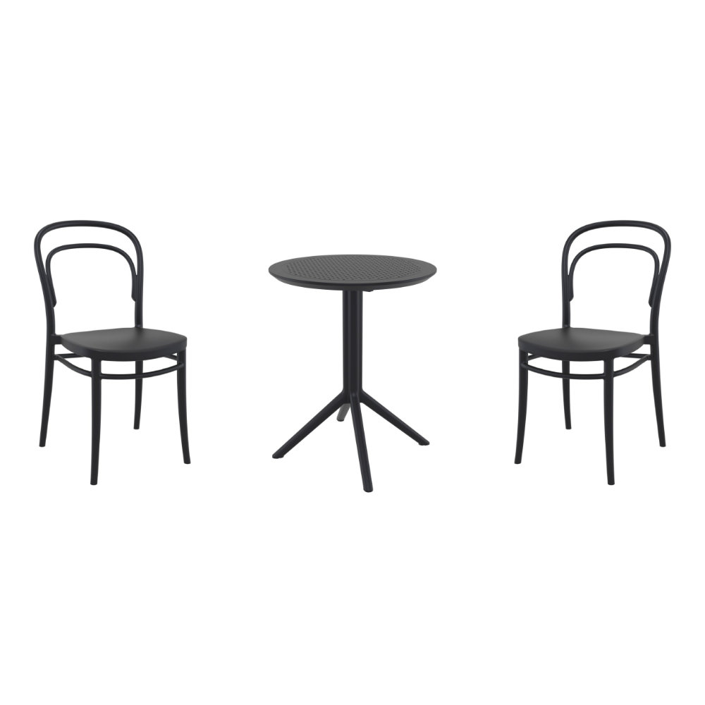 Transform your small outdoor area into a stylish space with Marie chairs and Sky 24" round folding table 3 piece bistro set in black. Made from durable polypropylene resin, this bistro set is perfect for balconies, terraces, decks, patios, cafes and restaurants. Marie chairs feature a sleek and contemporary design that adds a touch of sophistication to any space. Sky 24" round folding table provides plenty of room for two people to sit and enjoy a meal or drink together.